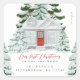 Esta bela etiqueta de morada de Natal apresenta uma casa festiva pintada, pronta para o Natal, com cobertura de neve e pinheiros de inverno. A tipografia "Nosso primeiro Natal em nossa nova casa" com bonito escrita vermelha é incluída junto com seu novo endereço e o ano em fundo branco. Compre esta loja para coordenar Enfeites de natal!
