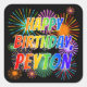 Adesivo Quadrado Primeiro Nome "PEYTON", Diversão "FELIZ ANIVERSÁRI