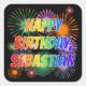 Adesivo Quadrado Primeiro nome "SEBASTIAN", Diversão "FELIZ ANIVERS