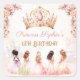 Princesa Aniversário, vinhetas quadradas adornadas com uma coroa rosa e dourada, flores delicadas, e adoráveis princesas em vestidos pastéis. Personalize facilmente o texto. Perfeito para qualquer aniversário de uma garotinha. - Kate Eden Art