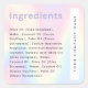 Etiqueta de produto da lista de ingredientes em um estilo moderno e minimalista com o nome da sua empresa rodado na dentro de lateral uma caixa branca num fundo de padrão arco-íris pastel macio.