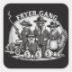The most wanted birds on the wrong side of the law. This 1930s-style bank robber scene features a crew of dapper chickens in pinstripes and fedoras, casing the joint for grain. Stick 'em on your notebook, laptop, or getaway vehicle. Vintage vibes. Feathered felons. No bail necessary.