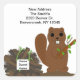 Um castor bonitinho com dentes grandes e uma barragem de castor com um sinal bonito. Personalize com seu novo endereço.