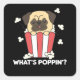 Adesivo Quadrado Pug Dog Popcorn Whats Poppin Funny