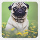 Adesivo Quadrado Pug no campo das flores