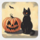 Adesivo Quadrado Pumpkin e Gato Preto do Halloween
