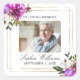 Coleção de Flores Roxas e Verdes. Um adesivo do programa memorial funerário com uma foto do falecido, seu nome, datas e elegante quadro de ouro com rosas de borboleta de cor d'água. Para mais personalização, clique no link "Editar usando a Ferramenta de Design" e use nossa ferramenta design para modificar esse modelo. Se precisar de ajuda ou itens correspondentes, entre em contato comigo.