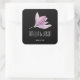 Adesivo Quadrado Púrpura Magnolia Floral Weding Favor em Preto