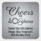 Adicione um toque personalizado de acabamento à festa de aniversário, obrigado a anotações ou favores com adesivos pretos e quadrados de cinza/selos de envelopes personalizados. Todo texto é simples de personalizar ou excluir. Esta modelo é criada para um aniversário de 40 anos, mas pode facilmente ser alterada para outro ano ou evento, como um aniversário. A design apresenta um fundo de aço inoxidável piscado, falso em prata, caligrafia com na moda "Saúde a 40 anos" e uma mensagem personalizável de tipografia minimalista moderna no fundo.