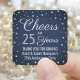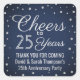 Adicione um toque final personalizado a notas de agradecimento de aniversário de casamento ou lembrancinhas de festa com esses adesivos quadrados em azul marinho e cinza com efeito prata / selos de envelope. Todo o texto é simples de personalizar ou excluir. Este modelo é configurado para um aniversário de 25 anos, mas pode ser facilmente alterado para outro ano ou evento, como um aniversário. O design apresenta pontos de confete em folha de prata sobre um fundo azul-marinho, "Brindamos a 25 anos" em caligrafia estilosa e uma mensagem personalizável em tipografia minimalista moderna na parte inferior. Por favor, note que a cor prata é impressa com cores cinza e branca, não é folha metálica.