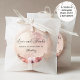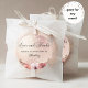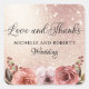 Adesivo de favor único e elegante em rosa dourado com detalhe floral e frase "Amor e Gratidão" em caligrafia moderna manuscrita. Fundo brilhante em rosa dourado e floral rosa beije. Possibilidade de adicionar seu(s) nome(s) e qualquer evento ou data usando as caixas de texto fornecidas. Duas opções de tamanho para escolher.
