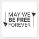 Um adesivo com um design, com texto, um par de pombos voadoras e linhas verticais com texto dizendo "Que Seja Livre para sempre" por expressar o amor pela democracia, liberdade e liberdade. Você pode personalizar o design, incluindo a alteração das cores das linhas, do texto e das pombas em "Editar usando a Ferramenta Design".