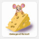 Um rato adorável pegando esse enorme bloco de queijo suíço para comer sozinho. Como quando alguém formando, está pronto para enfrentar o mundo inteiro. Eles se aguentam e, aos poucos, entram no mundo. Este adesivo de graduação fofo pode ser usado para presentes decorativos no ensino fundamental, médio, segundo grau ou universitário, cartões de saudação ou páginas de livros de recortes.