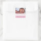 Um bonito obrigado que você pega que mostra sua doce garotinha. Uma banda branca ornamentado contém um medalhão contendo o nome do seu bebê ou outra mensagem. Adicione uma mensagem personalizada abaixo no painel rosa. Apropriado para um novo bebê, batismo ou batizante. Excelente de adicionar a qualquer favor ou como um favor em si, ou apenas faça dele um simples obrigado para você usar como selos de envelope. Disponível em cores alternativas com produtos correspondentes. com