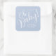 Na moda Querida, chá de fraldas, os adesivos azuis quadrados são personalizados com o nome da sua futura mãe e a data da festa em caracteres brancos. Disponível em mais cores e itens CORRESPONDENTES em nossa coleção.