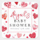 Adesivos fofos para chã de bebê, projetados para combinar com o convite de chã de bebê 'querido'. O design apresenta corações vermelhos de aquarela de diferentes padrões e tamanhos com uma mensagem de agradecimento elegante.