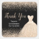 Um belo champanhe temia um elegante vestido de aquarela vestido de fundo preto com brilho falso no topo e no fundo do adesivo quadrado. Todo o texto pode ser personalizado para atender às suas necessidades.