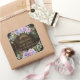 Estas etiquetas de autocolante quadradas apresentam lindas lilás roxas, flores de lavanda, verde florestal, fundo de madeira rústico e luzes de fada cintilantes. Personalize-os fácil e rapidamente, basta pressionar o botão personalizar para reorganizar e formatar o estilo e a colocação do texto. Perfeito para ficar no obrigado que você prefere! c) O Feliz Cat Studio