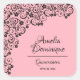 Um elegante design de um preto de espirais, flores e folhas em fundo cor-de-rosa, esses adesivos de festa de aniversário Quinceañera são perfeitos para qualquer aniversário de 15 da princesa. CORRESPONDENDO a itens na nossa loja.