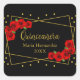 Adesivo Quadrado Quinceañera rosa vermelha Preta e Dourada