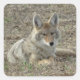 Coyote Lay Sticker. Um jovem coiote relaxa depois de uma manhã perseguindo camundongos nas pradarias curtas do sul de Alberta.