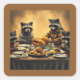 Adesivo Quadrado Raccoon Family Thanksgiving