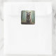 Este adesivo apresenta um guaxinim bonitinho na Floresta em uma manhã sombria.