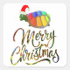 Adesivo Quadrado Rainbow Engraçado Tartaruga Vestindo presentes de