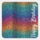 Adesivo Quadrado Rainbow Sparkle Metallic Elegant Feliz Aniversário