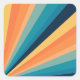 Ilustração geométrica de raios solares de estilo retrô com listras amarelas, laranja, azuis e turquesas