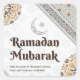 A warm and elegant Ramadan design featuring intricate gold and brown mandalas on a soft grey and cream background. A hand-drawn crescent moon and star sit above the rich dark brown “Ramadan Mubarak” serif typography, accompanied by a heartfelt message of love and kindness. Layered geometric borders and traditional Islamic motifs frame the composition, creating a serene and festive artwork that embodies spiritual reflection and celebration during the sacred month.