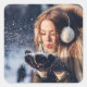 Adesivo Quadrado Rapariga de inverno soprando neve em sua mão