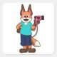 Adesivo Quadrado Raposa como cabeleireiro com secador de cabelo