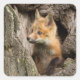 Adesivo Quadrado Raposa Vermelha Pequena num Hollow de Árvore