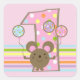 Adesivo Quadrado Rato de Balão com primeiro aniversario Cor-de-Rosa