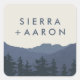 Estes retiros para as selas de envelopes de casamento das montanhas são perfeitos para um casamento moderno. O design apresenta uma serena cordilheira azul-aquática com uma floresta de árvores verdes em primeiro plano. Personalize o rótulo com os nomes da noiva e do noivo.