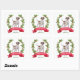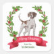 Nestes autocolantes de correspondência Feriados, um retrato de aquarela de um Cachorro Ponteiro é cercado por uma coroa de morango vermelha. Na parte inferior está uma faixa vermelha com sua saudação de Natal personalizada, e sua assinatura está em verde embaixo dela.