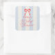 Adesivo Quadrado Red Bow & Pale Blue Stripes Baby Shower