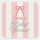 This coquette baby shower sticker features a red bow on a cream background with pink stripes. Personalize it for your needs. You can find matching products at my store.
