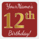 Adesivo Quadrado Red, Faux Dourado 12 Birthday + Autocolante
