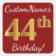 Este simples design de autocolante de aniversário apresenta uma mensagem como "CustomName’s 44 Birthday!", com o "44" a ter uma aparência de cor falsa/imitada inspirada em ouro, num fundo de cor vermelha. O nome pode ser personalizado. Os adesivos como estes podem talvez ser um presente para alguém que comemora o seu quarenta e quarto aniversário, ou talvez possam ser usados como decorações numa festa de aniversário. [~Z0000245]