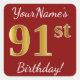 Este simples design de autocolante de aniversário apresenta uma mensagem como "91rua Birthday!", com a "91ruas" a ter uma aparência de cor falsa/imitada inspirada em ouro, num fundo de cor vermelha. O nome pode ser personalizado. Os adesivos como estes poderiam talvez ser um presente para alguém que comemora o seu 90° aniversário, ou talvez pudessem ser usados como decorações numa festa de aniversário. [~Z0000245]
