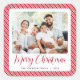 Celebrar as férias com este adesivo festivo vermelho e branco listrado Feliz Natal! Apresentando uma moderna borda de cana doce, elegante tipografia vermelha de roteiro, e uma foto favorita da família, este adesivo de feriado é um detalhe perfeito para sua doutrina e cartões de natal de férias. Personalize com seu nome de família e ano.