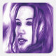 Arte original criada com lápis colorido. Feche o retrato de uma mulher, encarando com sabedoria algo à distância, feito em tons de roxo. O cabelo dela, normalmente vermelho, enrola seu rosto bonito. Este personagem deve ser a rainha de Vênus e provavelmente toca um piano perverso. Veja na minha loja os adesivos mais legal!