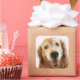 Estes autocolantes quadrados apresentam uma fotografia de um sorridente cão que recupera o ouro, no retrato.