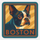 Adesivo Quadrado Retro Boston Terrier Retrato