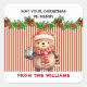 Adesivo Quadrado Retro Christmas Stripe Pattern & Teddy Bear Custom