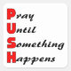 PUSH, Reze até que algo aconteça. Um ditado cristão excelente que significa muito. Este design é composto por grandes letras em negrito com a palavra PUSH. Reze até que algo aconteça seja escrito em um script preto. Imagem é propriedade do Coração Diligente