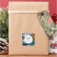 Os adesivos comerciais com uma fotografia cênica com árvore cobrindo montanhas em cores do outono. Um rio fluindo ao redor das rochas. Uma grande lua branca de cheio paira acima.