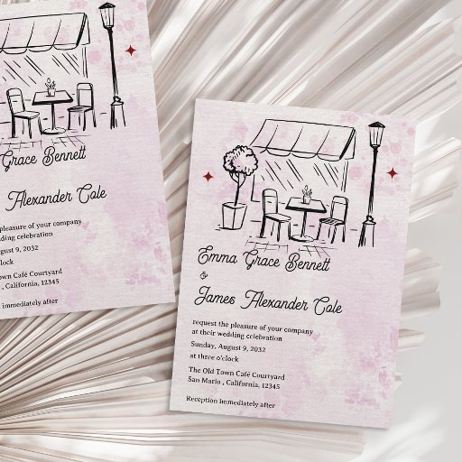 Romantic Pink Café Sketch Wedding Stationery SuiteCriado por Mypaperlove Designs